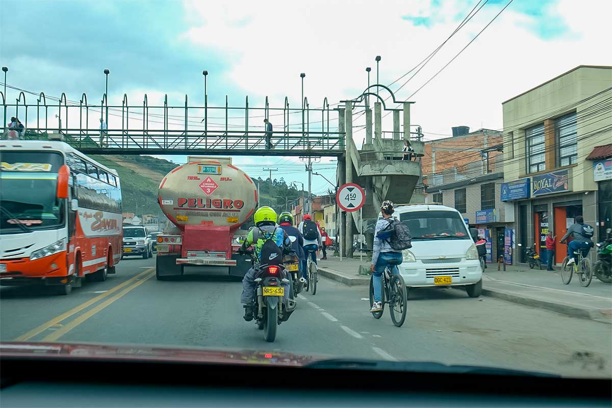 Dann ging es los. Der Verkehr in Bogotá war lebhaft, wir standen an vielen Ampeln und reihten uns in Staus ein. Doch je länger wir unterwegs waren, desto mehr legte sich das Lampenfieber. Bereits nach wenigen Kilometern fühlte sich das Unterwegssein als Selbstfahrer und Selbstfahrerin überraschend normal an.